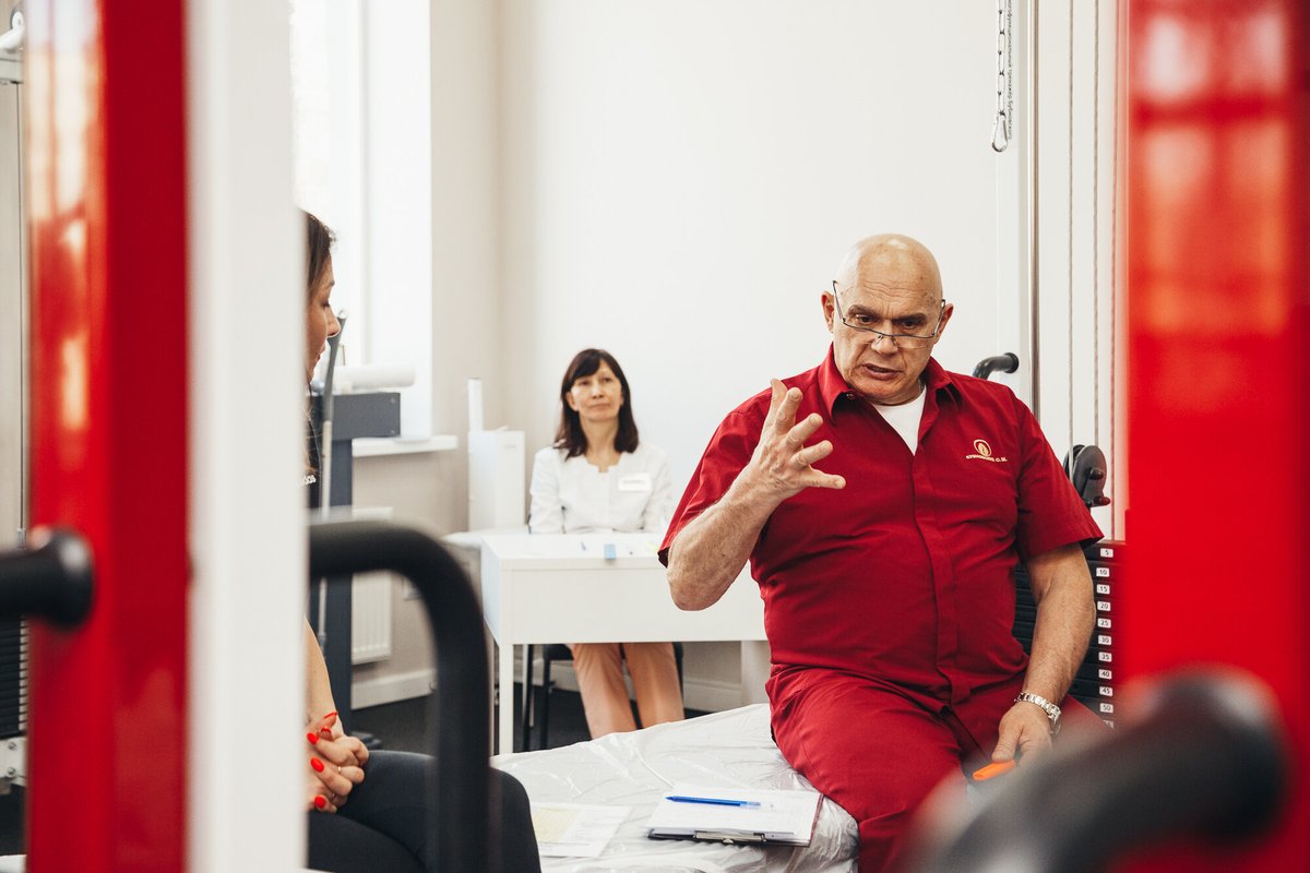 Сначала идет консультация с врачом (хотя в дальнейшем стало понятно, что кроме белого халата и названия, за этим мало что стоит). Врач поинтересовался историей заболевания (ревматоидный артрит), дал рекомендации сдать кровь на ревматоидный фактор, и экспериментальным путем определил минимальную нагрузку на суставы на «чуда тренажерах».